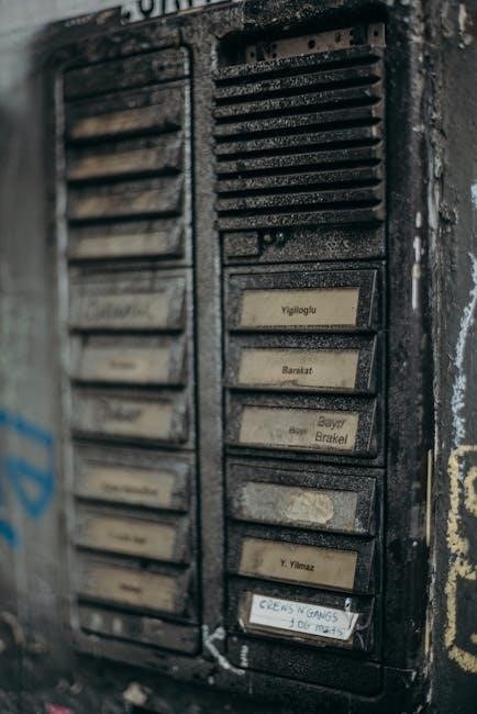 PDF guides emphasize the central role of circuit breakers and panel boxes in residential electrical safety. These components protect wiring from overloads and short circuits, preventing fires. Understanding amperage ratings is crucial; always match wire size to the circuit’s amperage as specified by the National Electrical Code (NEC).