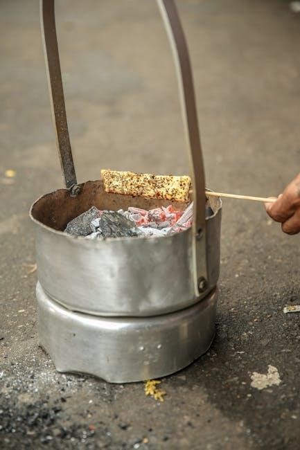 Carefully remove the ash pan‚ ensuring it’s securely closed to prevent spills. Dispose of cooled ashes in a metal container with a tight-fitting lid‚ placing it away from combustible materials.